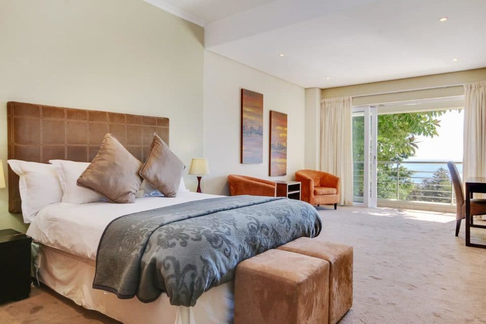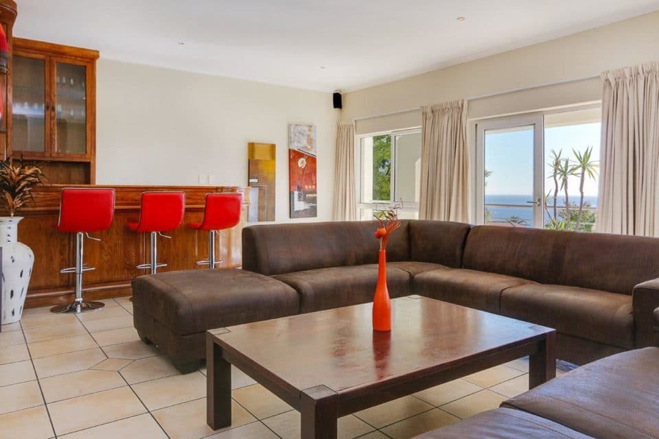The living area is upstairs and has access onto the balcony with lovely sea views.