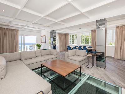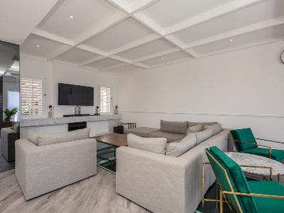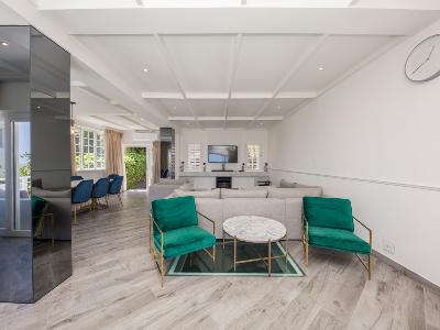 Elegant Camps Bay home has been given a modern facelift and is elegantly furnished. There are wonderful sea views from the main living & dining area, as well as 3 of 4 the upstairs bedrooms.