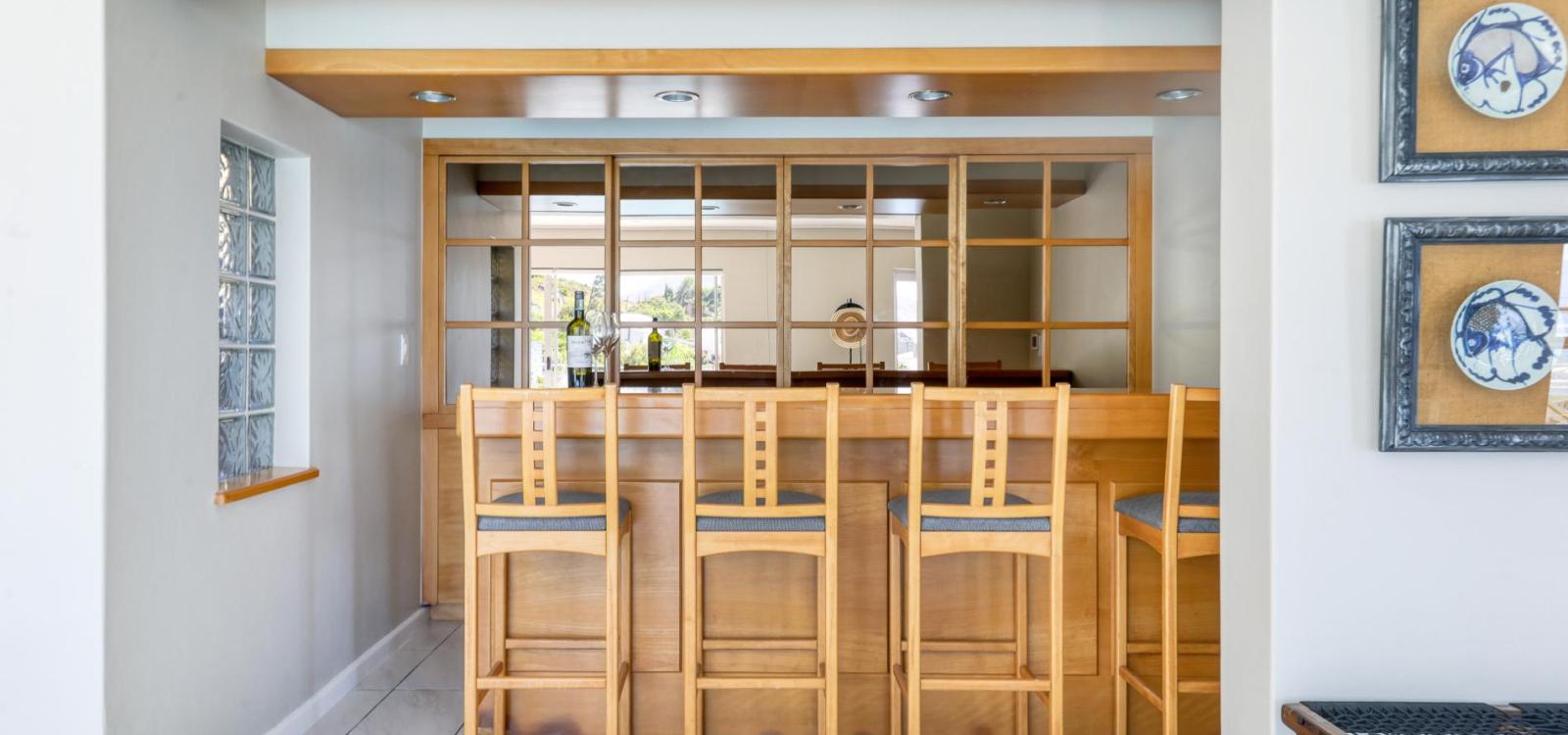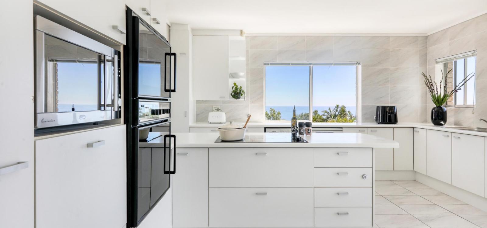 The living area is open plan a lounge and dining area that opens onto the pool deck with magnificent 180 degree ocean and mountain views. The fully fitted kitchen is just off the living area and is fitted with every thing you may need for your perfect stay.